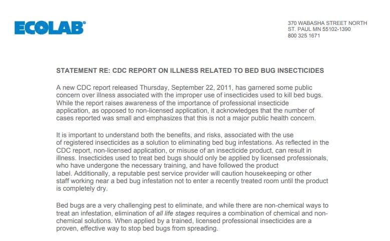 La réponse d'Ecolab au rapport des CDC